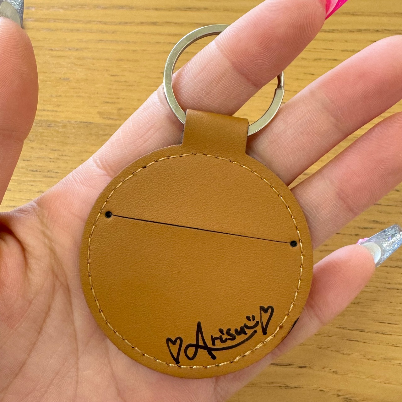 このレザー製のキーホルダーは、ギャル店長の直筆サインが施された特別なアイテムです。手に取るたびに感じる滑らかな質感が、あなたの日常を華やかにしてくれることでしょう。ムラタ拉麺のロゴがデザインされており、ファンやコレクター必見の一品です!